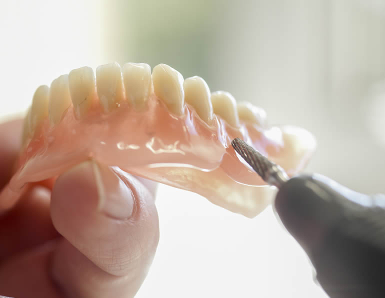 Dentures are removable prostheses which can be used to restore small or large gaps caused by missing teeth. A full denture is used to replace a complete arch of lost teeth, whereas a partial denture replaces one or several missing teeth.